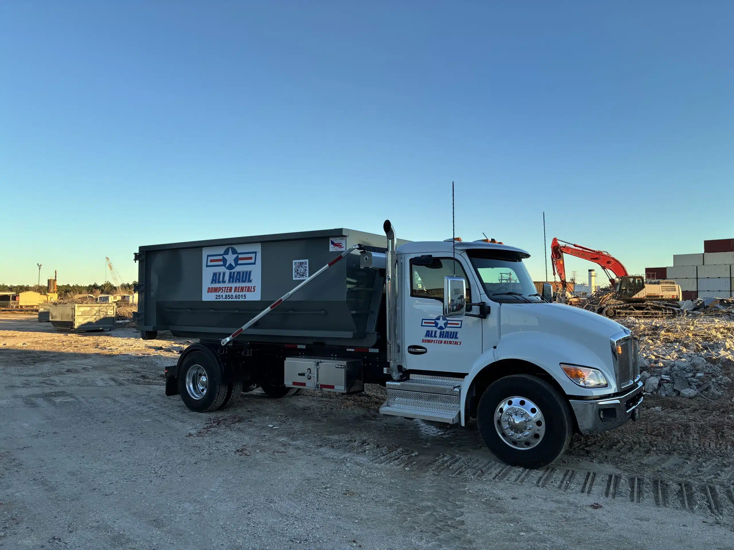 All Haul is veteran owned and operated in Mobile, Alabama. We pride ourselves on fast delivery, courteous drivers, and crystal-clear pricing. From small weekend projects to large-scale remodels, we make debris removal simple with prompt delivery and on-time pickups that keep your project moving.